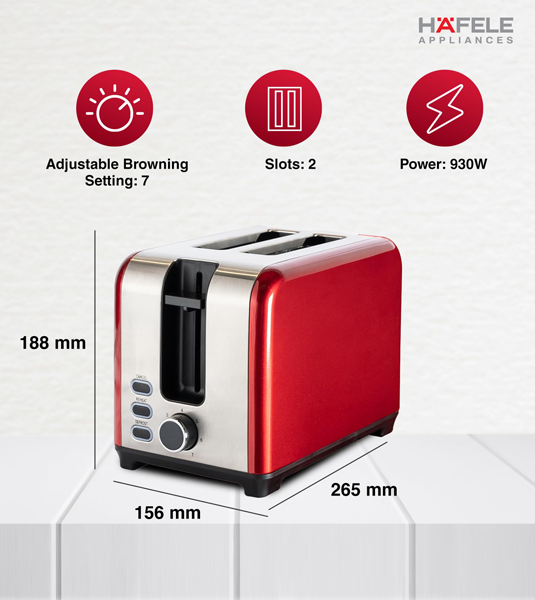 Hafele Amber Electric Toaster red 2 slot bread size in slots