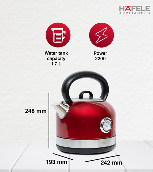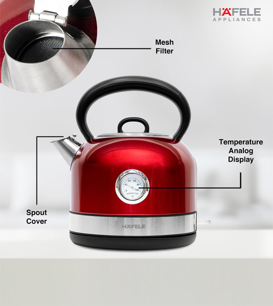 Häfele Dome Plus Electric Kettle 1.7L – Stainless Steel with Temperature Display